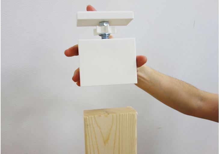2×4材の上下にアジャスターを取り付けると、突っぱり棚の柱を設置することができます。DIY初心者や家族が楽しめる「安全で手軽なDIYパーツブランド」。