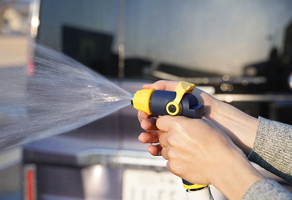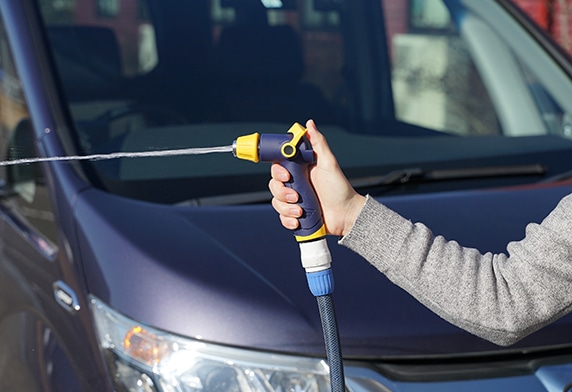 先端ノズルの回転部10,000回や水量調整レバー摺動部 25,000回も、5年相当の動作回数テストを軽くクリア、優れた耐久性 も合わせ持つ洗車のために開発された専用散水ノズルです。