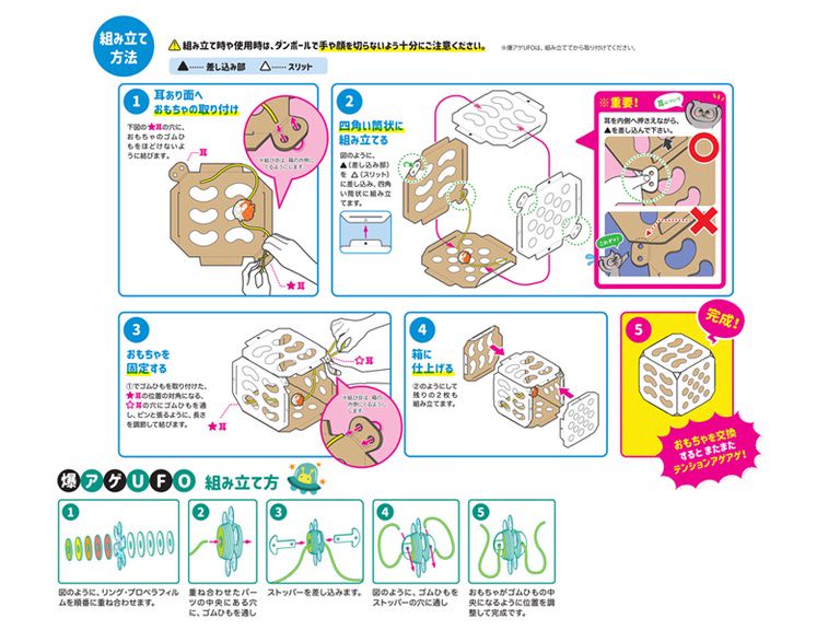 本体:ダンボール/爆アゲくしゃ玉:ゴムひも、ポリエステル/爆アゲUFO:ダンボール、ゴムひも、PVC