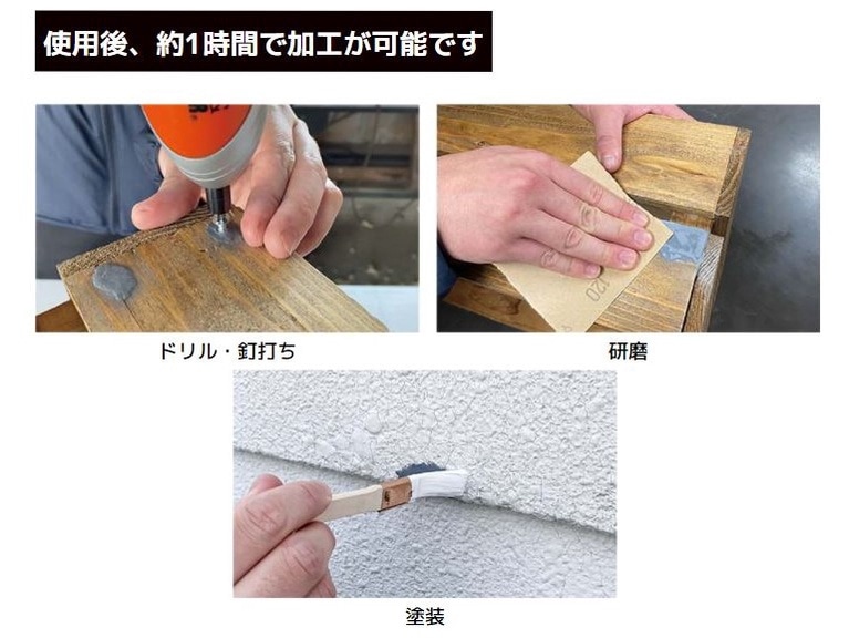 ※使用後、約1時間で加工(ドリル、釘打ち、研磨、塗装)が可能となります。