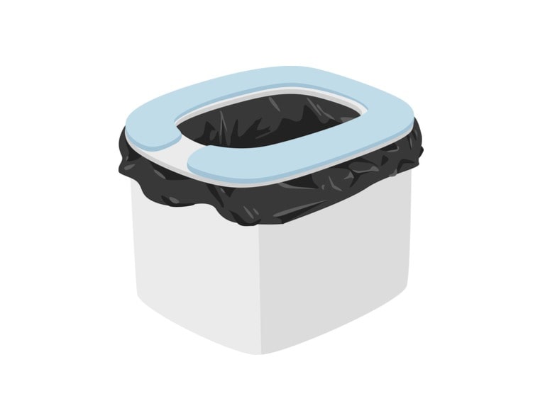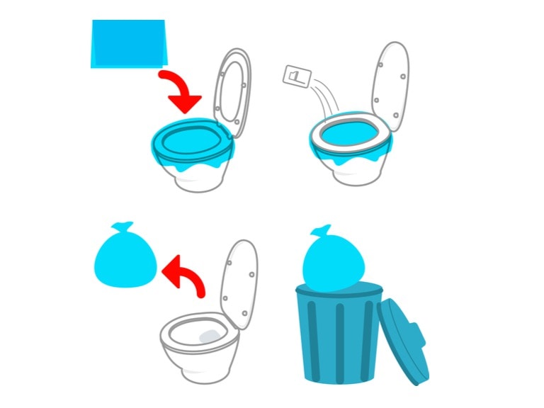 一般的には、袋を便器に被せて使用する簡易トイレが便利です。