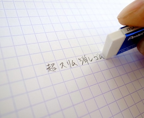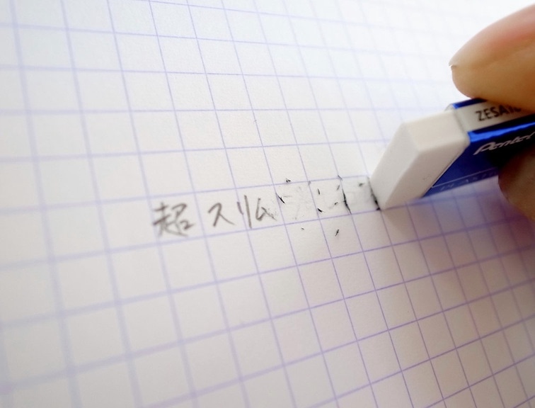 4.5mmというスリムさは、細かな文字を消せるだけでなく、携帯性という面でもメリットがある。日頃よく使っている手帳のカバーやノートカバーに忍ばせておくこともできてしまう。そもそも大人は、ゴシゴシ消しゴムで消すよりもチョイ消しが中心なので、「アイン サラ」をメイン消しゴムにしてもいいのではないかと思う。