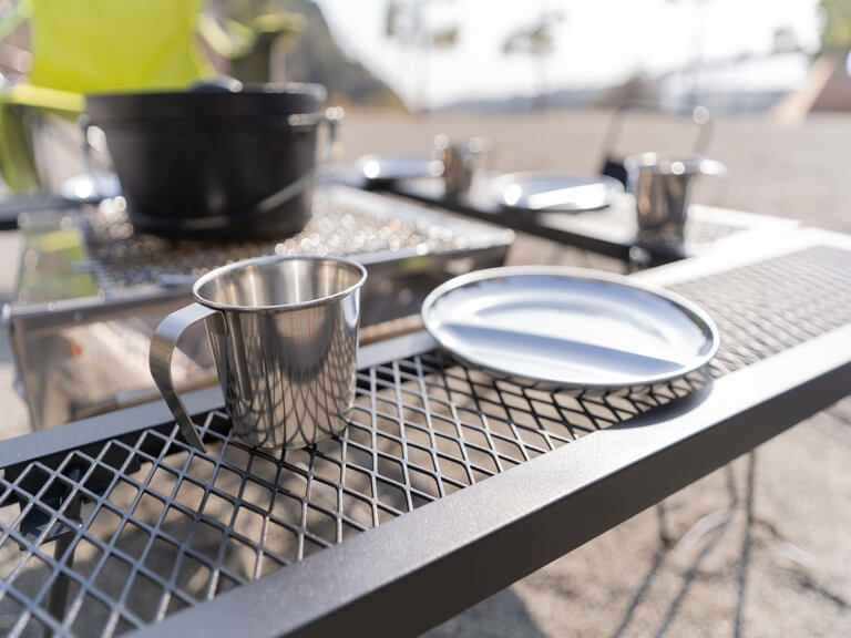 キャンプ用セットの食器をおすすめするポイントのひとつが耐久性の高さです。キャンプ用に作られていることから、素材はステンレスやチタン、メラミン樹脂など丈夫な素材でできているものが多くあります。