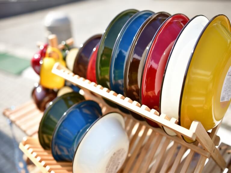 また、食器のカラーリングが豊富なこともホーローの魅力のひとつ。見た目からも食事を楽しめるうえ、家でも使えるため経済的なアイテムでもあります。