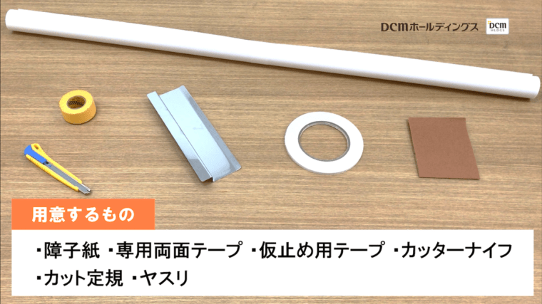 障子紙の貼り方、第2回目の今回は両面テープ貼り編。両面テープ貼り障子紙を貼る際に用意するものは: