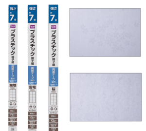 本プラスチック層を障子紙の両面に貼り合わせて、破れにくい障子紙です。障子紙のJIS規格破裂強さの下限値にくらべ約7倍の強さ。明るさも約15%アップし、室内が明るく感じられます。冷暖房効果があり、汚れたら水ふきができます。UVカット95%、両面テープ貼り。無地、雲竜、桜の3柄から選べます。サイズ:94cmx1.8m。