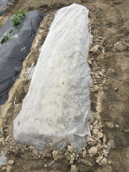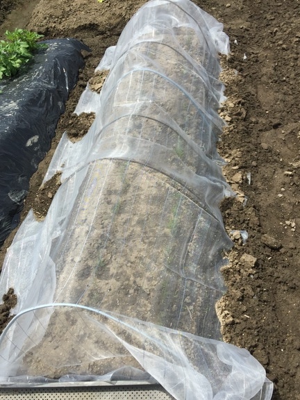 画像は昨年の畑サイクル農園で育てたニンジンにベタがけした様子です。