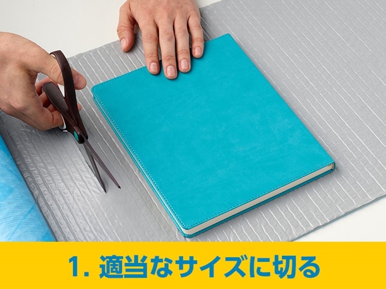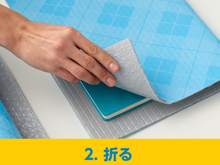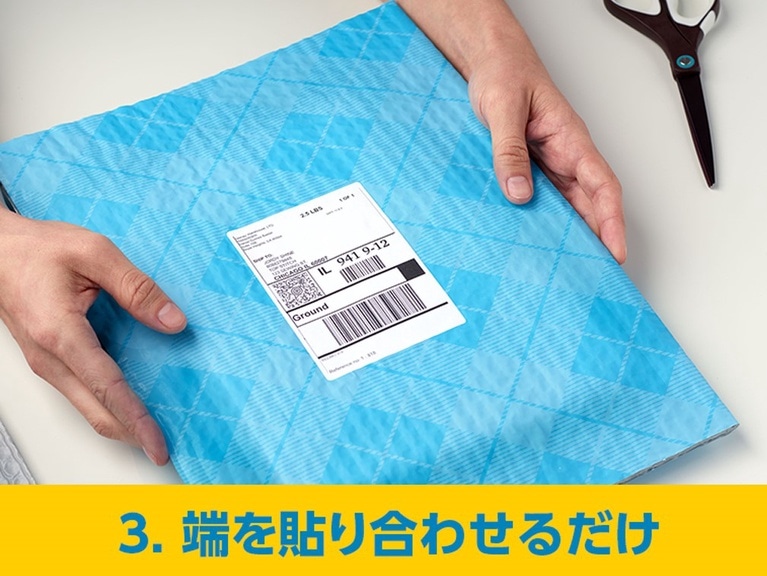 切って、包んで、貼り合わせるだけの簡単ステップで梱包作業の手間と時間を削減します。