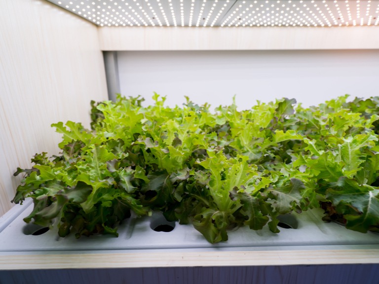 水耕栽培では日光の当たる場所で栽培できる太陽光型もあれば、太陽光の代わりに蛍光灯やLEDを使って育てる人工光型もあります。植物工場のようなスタイルではLEDライトによる水耕栽培が多くおこなわれています。