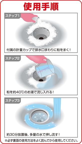 ※つまりの原因になるので粉を排水パイプに直接入れないでください。