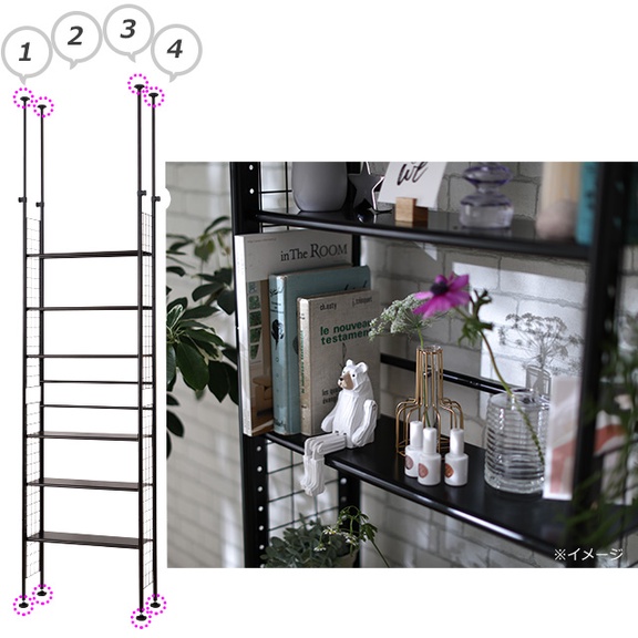 4本脚でしっかりと固定できる突っ張りラック