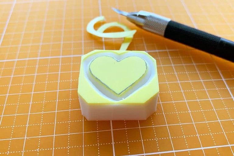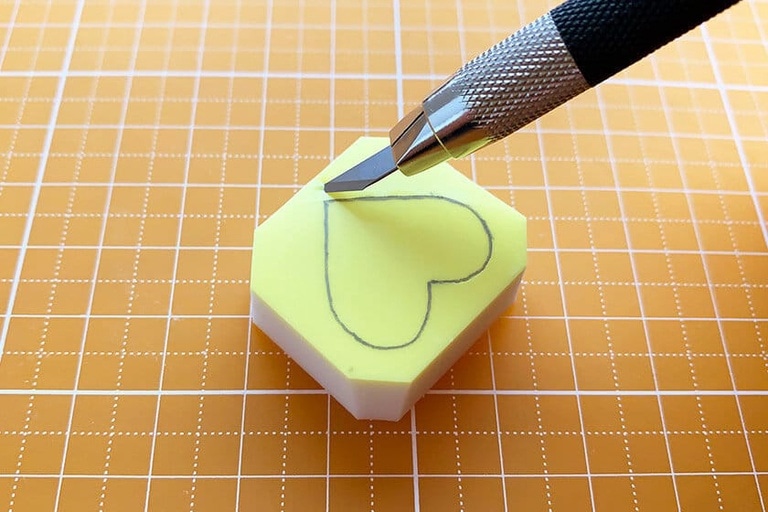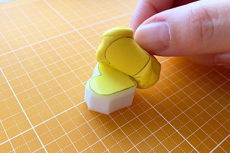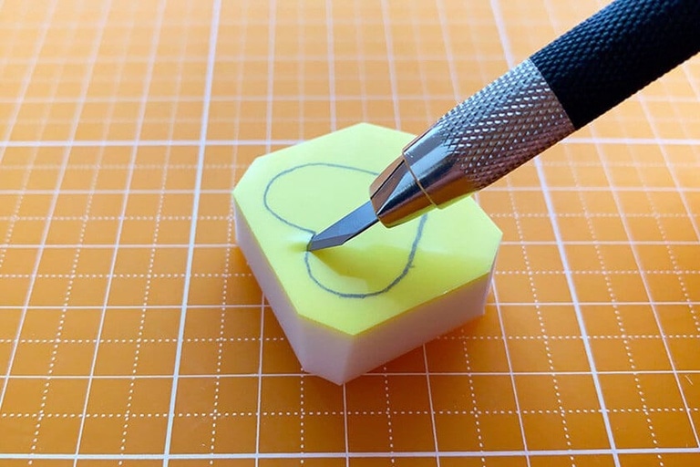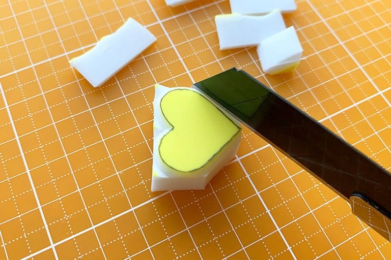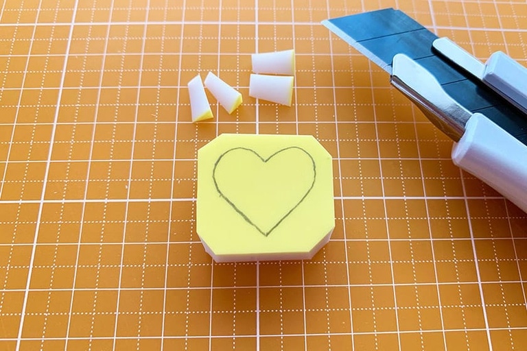 4.切り出した消しゴムはんこの角を少しだけ落としておく。