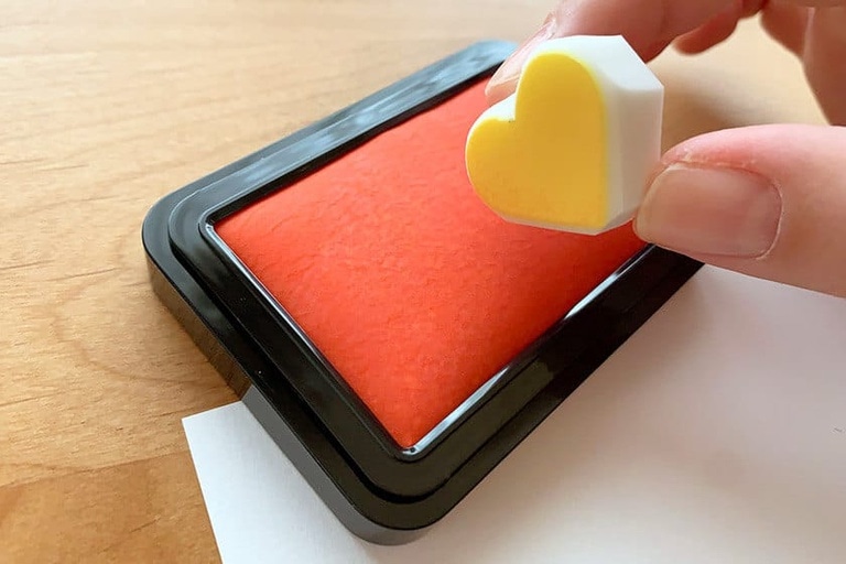 こうすることでスタンプを押したとき、余分なところにインキがつかないので綺麗に押せます。