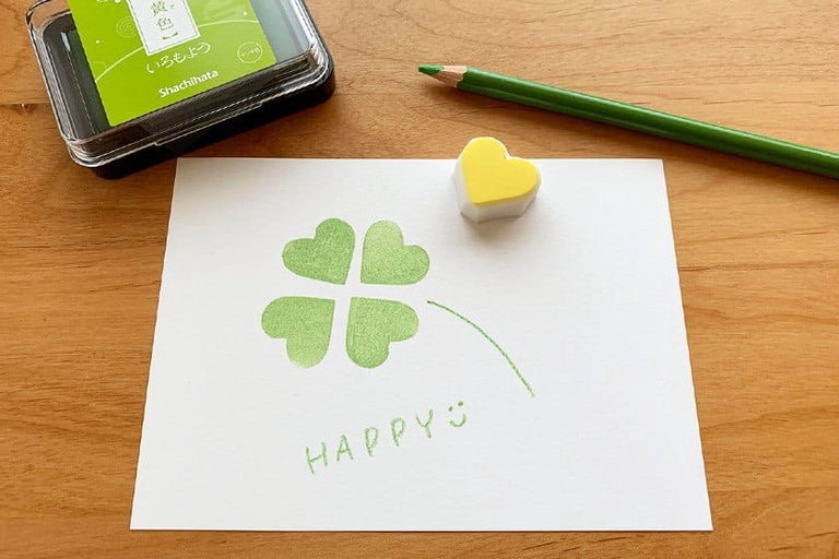 萌黄色で4つ押すと四つ葉のクローバーに。