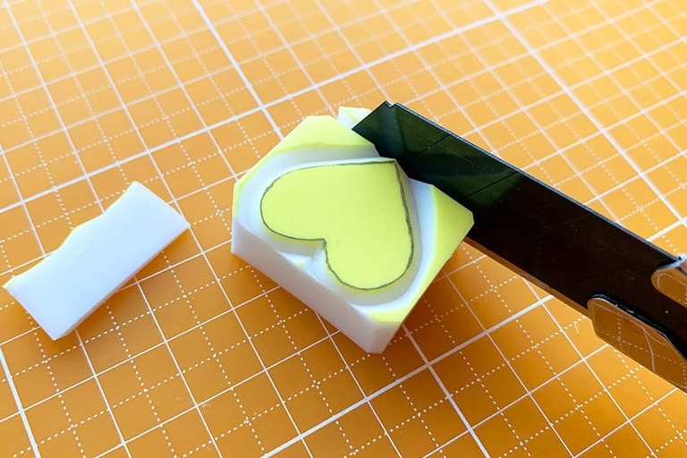 3.大きめのカッターナイフで消しゴムを切り出す。