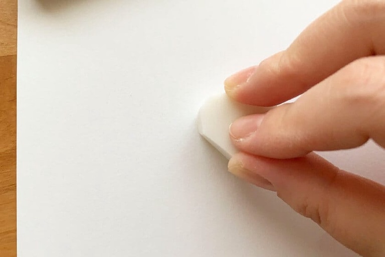 14.ねりけしをぎゅっと押し付けて余分なごみや鉛筆の粉を落とす。
