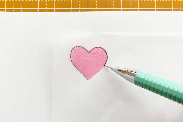 2.トレーシングペーパーを裏返して消しゴムに当て、先の丸いものや爪などで図案の裏からこする。
