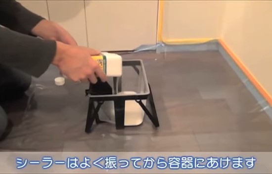 シーラーを良く振ってから容器にあけます。