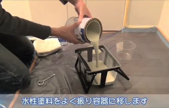 水性塗料をよく振り容器に移します。