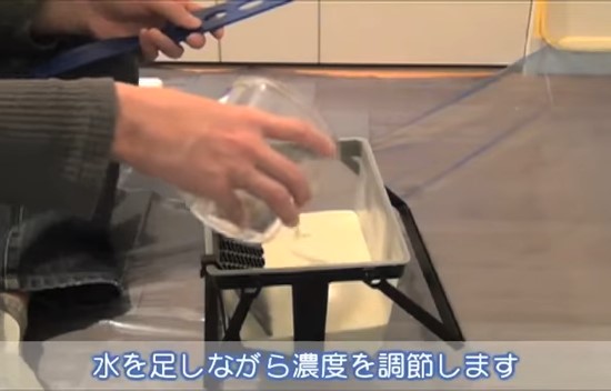 塗料をローラーによく馴染ませながら濾します。