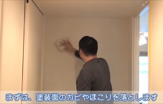 塗装する壁のカビやホコリを落とします。