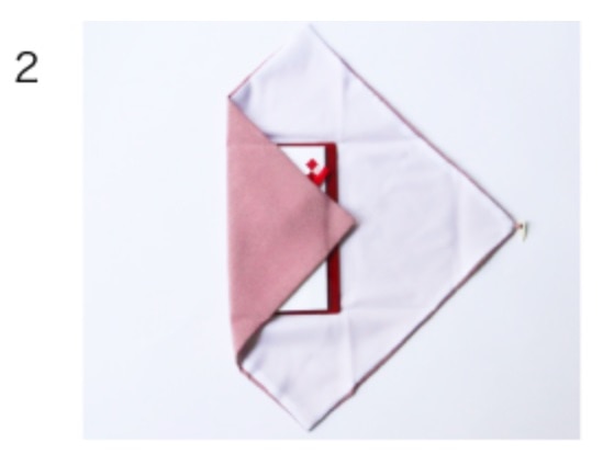 渡すときは左手にふくさを乗せ、右手で開いて金封を取り出し、ふくさを軽くたたみます。