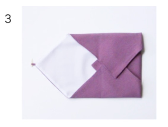 左端を中央に向けて折り、先端を裏側へ巻き込むようにして折る。