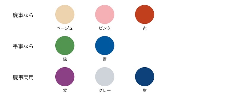 赤やピンク、ベージュなどはお祝いの席に、青や緑、紺などはお悔やみの席に。