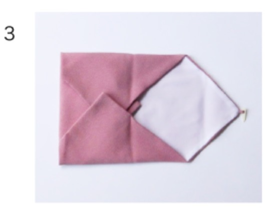 右端を中央に向けて折り、先端を裏側へ巻き込むようにして包む。
