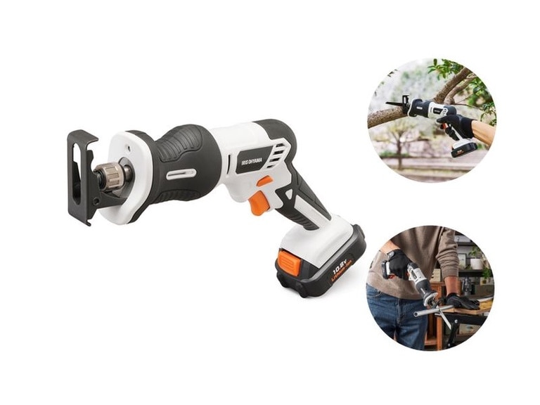 コードレスで軽量、ハイパワーなので、様々な材質を切断できる充電式レシプロソー、ACアダプター・充電器、充電式リチウムイオン電池、木工用・鉄鋼用ブレードのセットです。庭木の枝打ちや、粗大ごみの解体など、様々な部材の切断が可能です。ワンタッチでブレードの取り外しができる為、簡単に交換ができます。ACアダプター・充電器、充電式リチウムイオン電池、鉄鋼用ブレード、木工用ブレードが付いています。