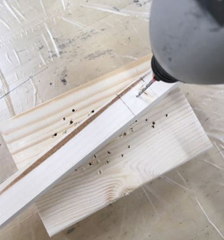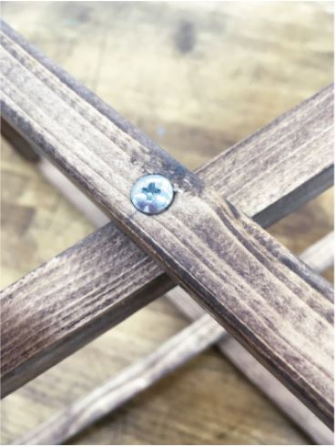 2つの木枠を合わせて、初めに下穴をあけた真ん中の重なった部分でねじ止めをします。