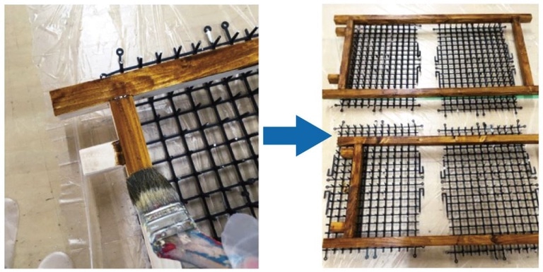 広がりすぎないように木枠の下部にチェーンを取り付けます