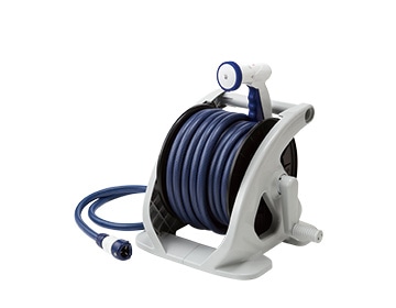 国内散水用品のトップシェアを誇る「タカギ」との共同開発により、ハイグレードなホースと多用途な散水ノズルがコラボ。使いやすい、オープンタイプのホースリールです。