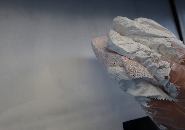 こすり過ぎると段ボールが傷ついてしまうので、なでるように優しく塗るのがポイントです。今回は刷毛ではなく、スポンジを使いました。