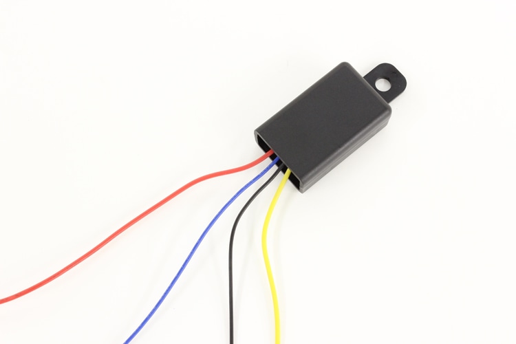 ユニット用リレーの電源は赤色配線、出力は黄色配線、 青色配線はプラス入力・黒色配線はマイナス入力線となります。