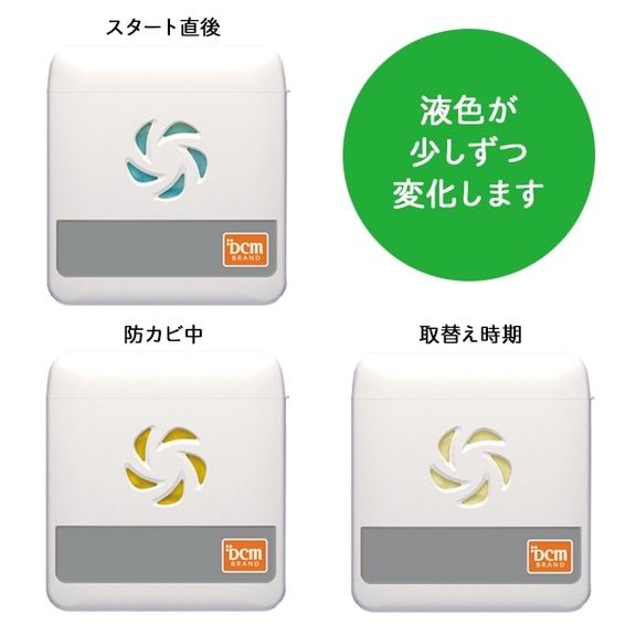 吊るしておくだけでカビの発生を抑える成分が浴室内に広がり、さらに除菌・消臭までしてくれます。持続期間は約60日。取替え時期を色でお知らせしてくれるので、つめかえ用への交換時期も一目瞭然!