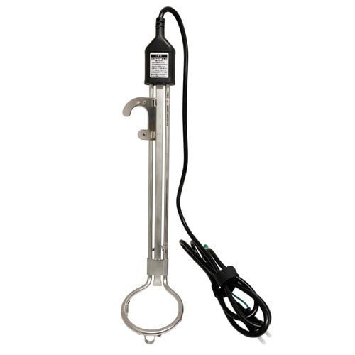 三本脚でバケツの底部にヒーターが設置することを防ぎ、バケツ内での安定感が高くなります。パイプ部分はステンレス製でサビにくく、お手入れ、保管が楽です。最低、最高水位線が本体パイプにマークされているため、消えてしまったりはがれてしまう心配がありません。フック部分は可動式のため、バケツのサイズに合わせて調整が可能です。PSEマーク認証です。