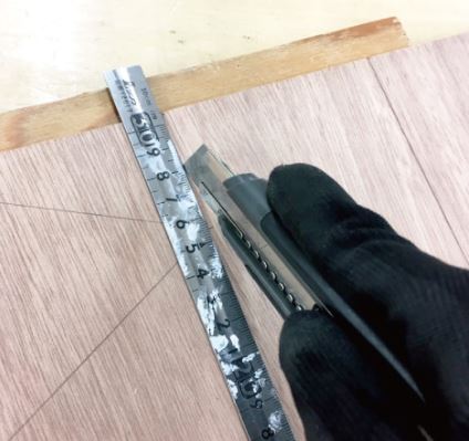 墨付けをした部分に合わせてカッターで木材を切ります。
