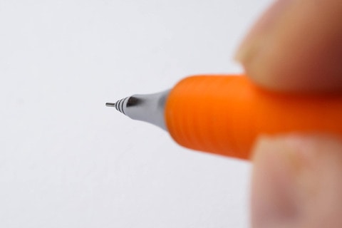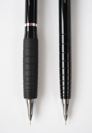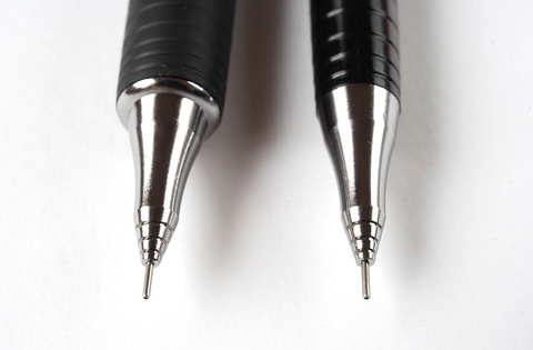 0.2mm、0.3mmの超極細芯で書く時に気になることと言えば、ペン先まわりの視界だ。その視界を左右するのがペン先のデザインである。