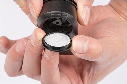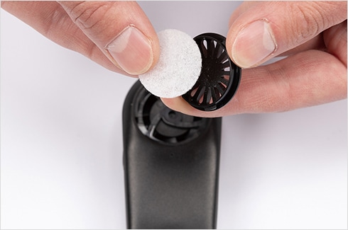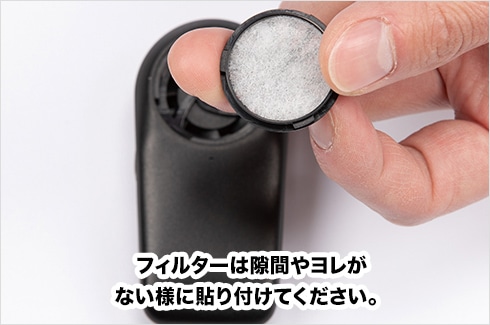 フィルターはキャップの内側に取り付けます。