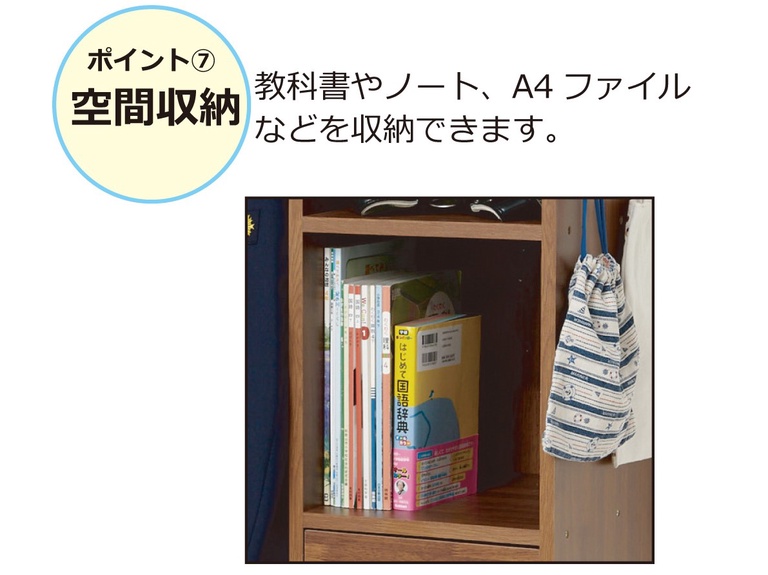 教科書やノート、A4ファイルなどを収納できます。