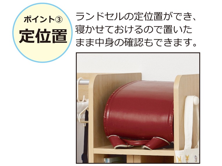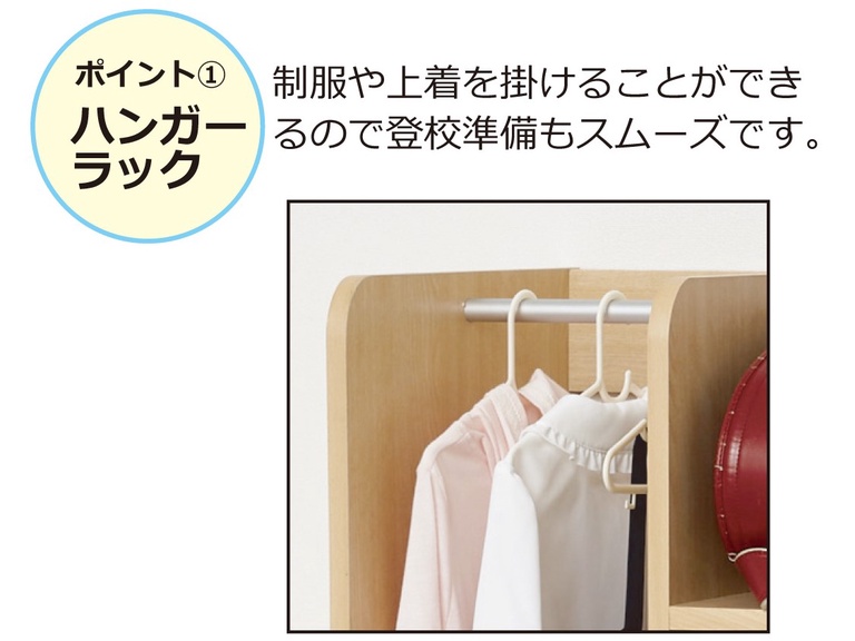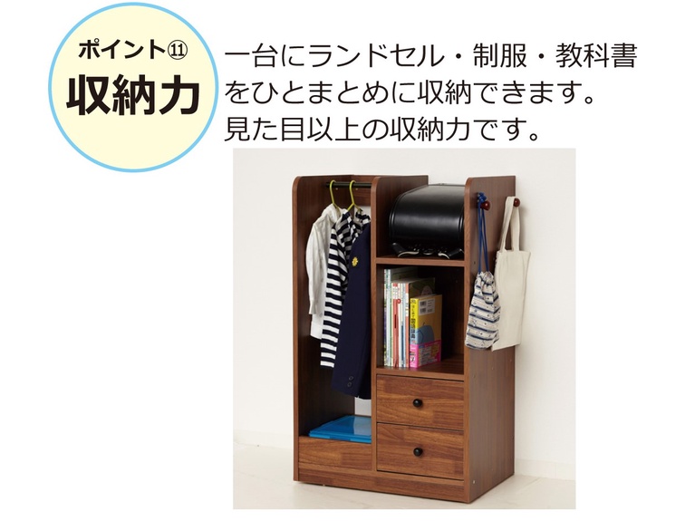 一台にランドセル・制服・教科書をひとまとめに収納できます。