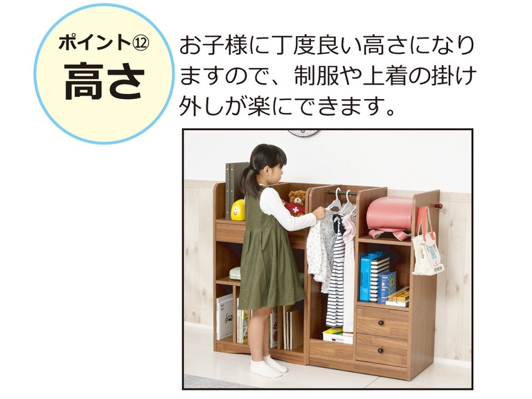 お子様に丁度良い高さになりますので、制服や上着の掛け外しが楽にできます。