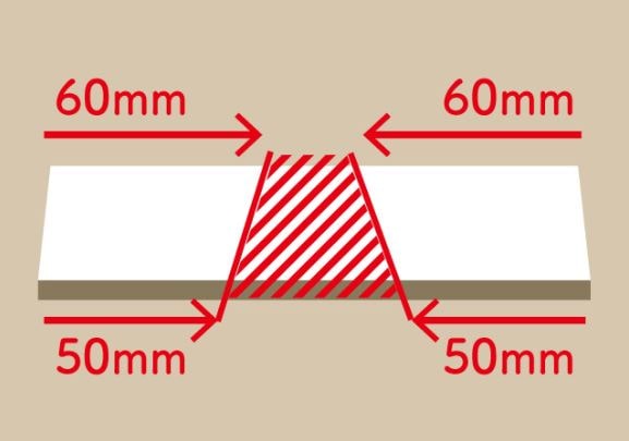 Dの木材は下のように赤線でカットします。