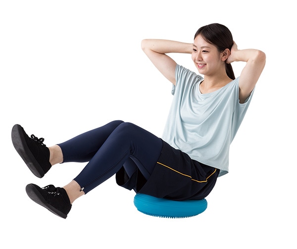 バランスクッションでのエクササイズは、手軽に自宅ででき、置き場所をとらないのもメリットのひとつです。