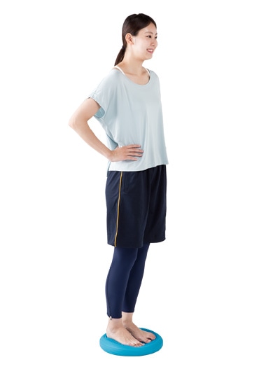 床に足をついた状態で立ち、両足でディスクの中央に乗ります。