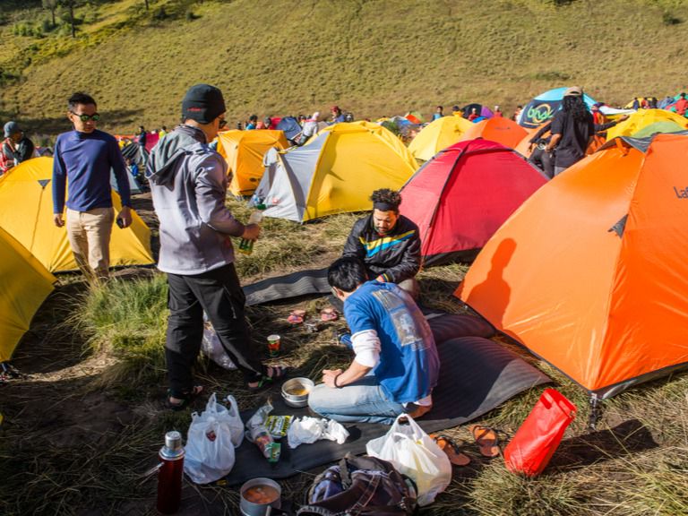 テントを設営する前にできる用事は先に済ませて、トイレやお風呂、ゴミ捨てなどは、極力短時間にまとめておこなうようにし、テントから離れる回数を減らすようにしましょう。