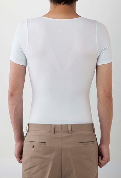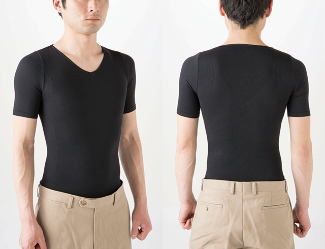 スパンデックスの加圧(締め付け)によって背筋を伸ばす効果があります。