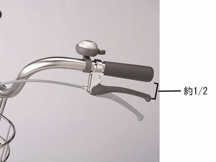 ブレーキバーを握ったときに、バーと握りグリップの間が約1/2でブレーキが効くのが標準です。これよりも狭くなるとブレーキが甘いと言えます。