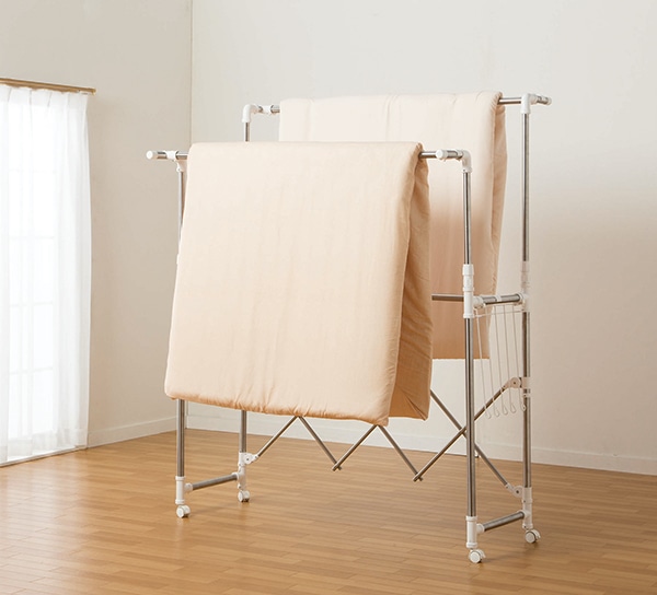 ふとんなら2枚干せます。移動に便利なキャスター付き。
